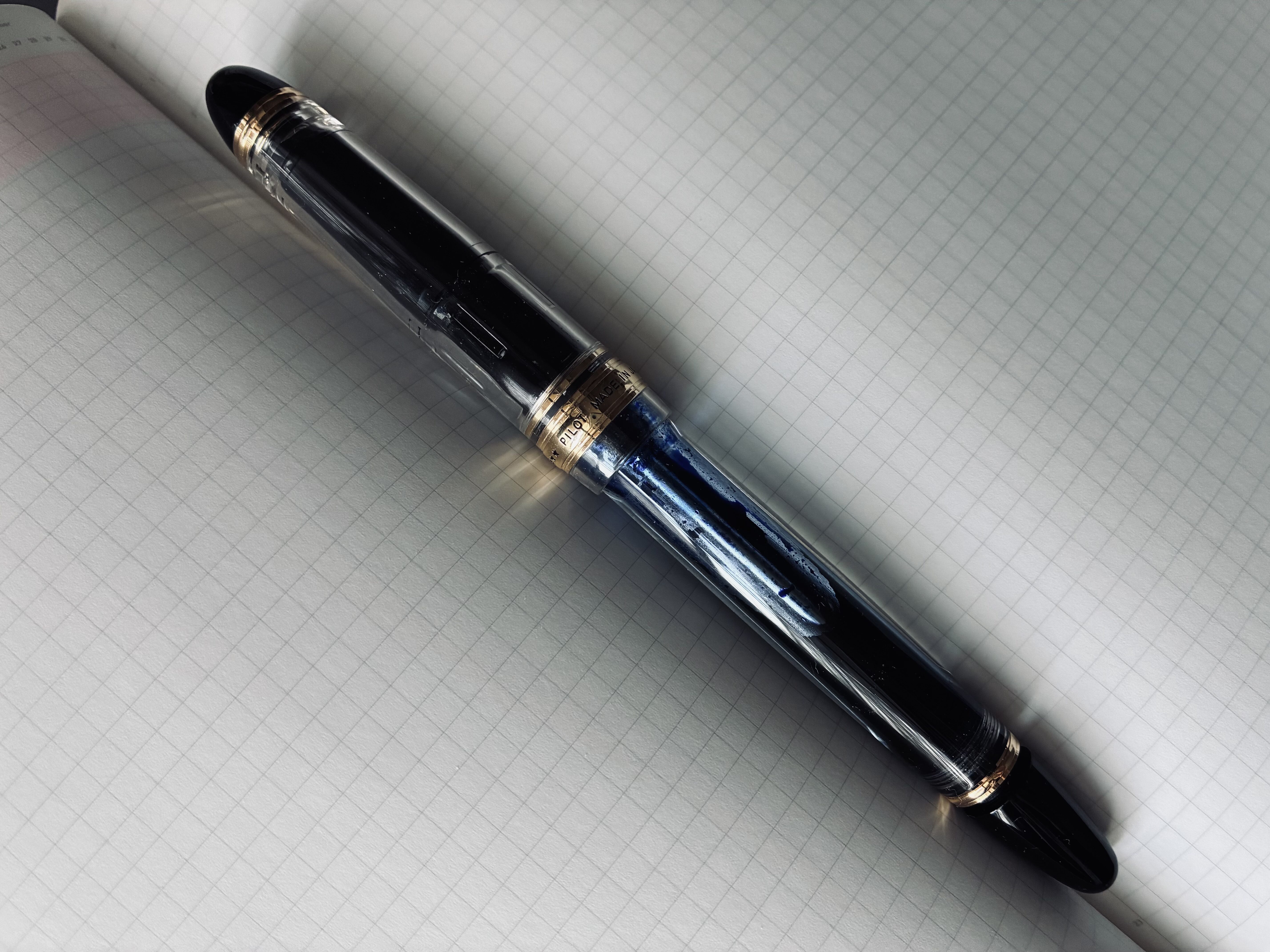 インクの見える透明軸が美しい。何より、吸入するときの音が心地良い。今にして思えばほとんど一目惚れだった。プランジャー式という、国産の万年筆としてはほかにない個性的なデザインだったのも決め手のひとつになった。